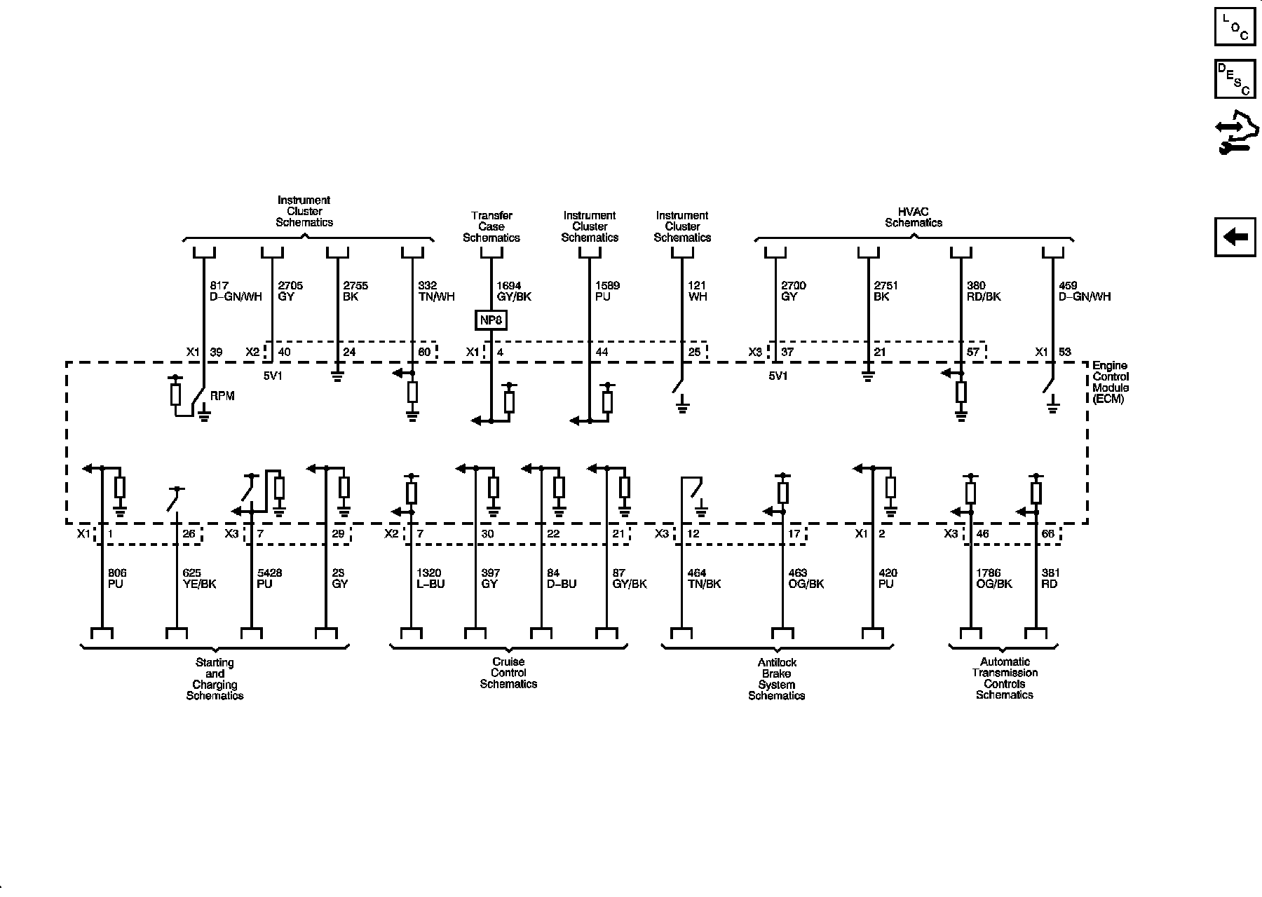 Locations: The locations for the Connectors, Grounds, Splices, and Grommets shown within these diagrams can be found via their numbers at Vehicle Locations. Locations