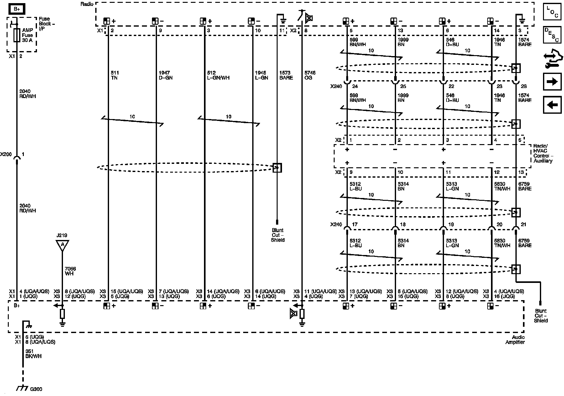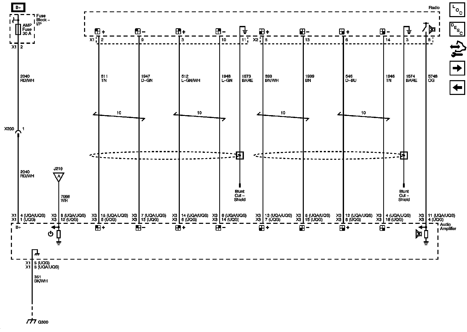 Audio Amplifier Power, Ground, and Front and Rear Audio Inputs - UQA or UQS