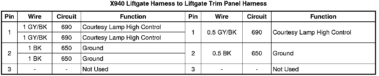 X940 Liftgate Harness to Liftgate Trim Panel Harness