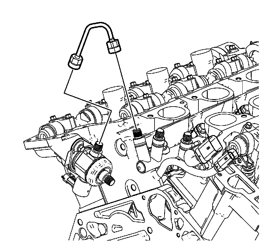 9. Install and hand-tighten both ends of the NEW high pressure fuel line and tighten the high pressure fuel line fitting nuts to 30 Nm (22 lb ft).