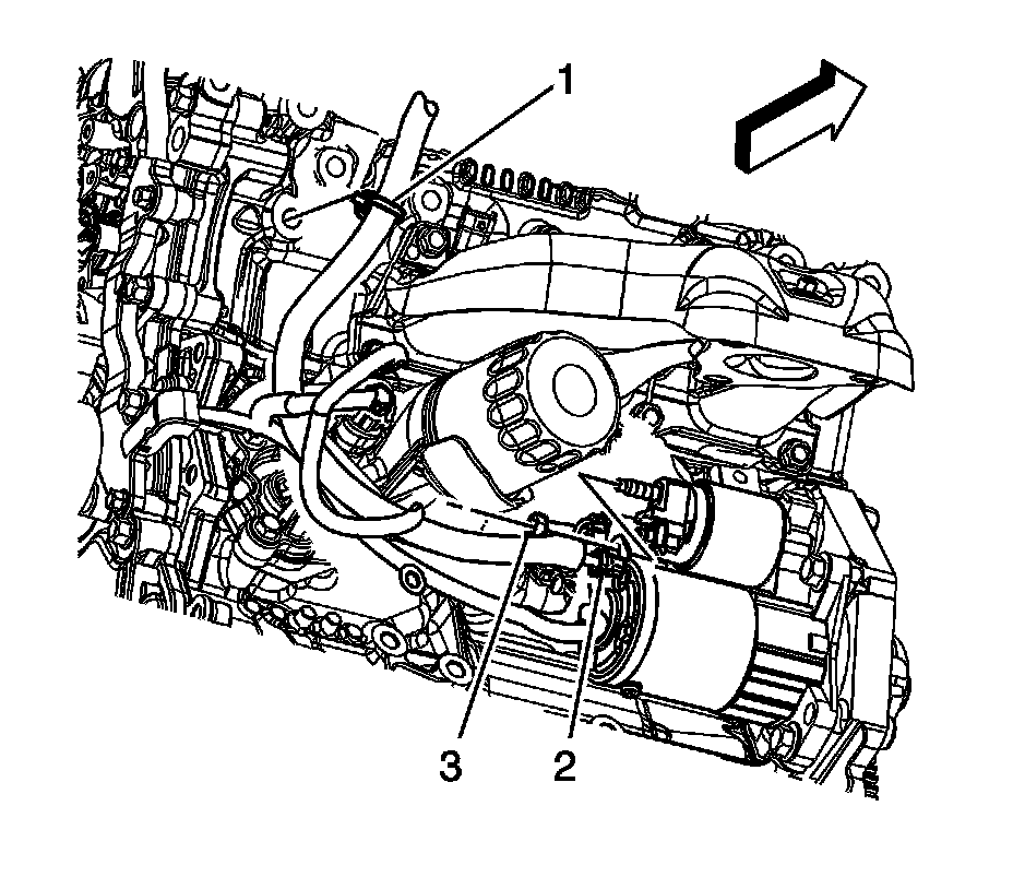 3. Install the battery positive junction block cable terminal (2) to the starter.