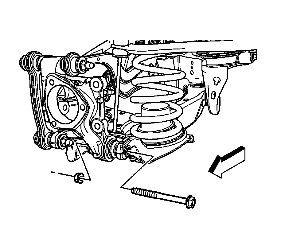 Note: If removing the lower nut and bolt in step 8 or the upper nut and bolt in step 9, to service other suspension components, it is not necessary to remove the knuckle.