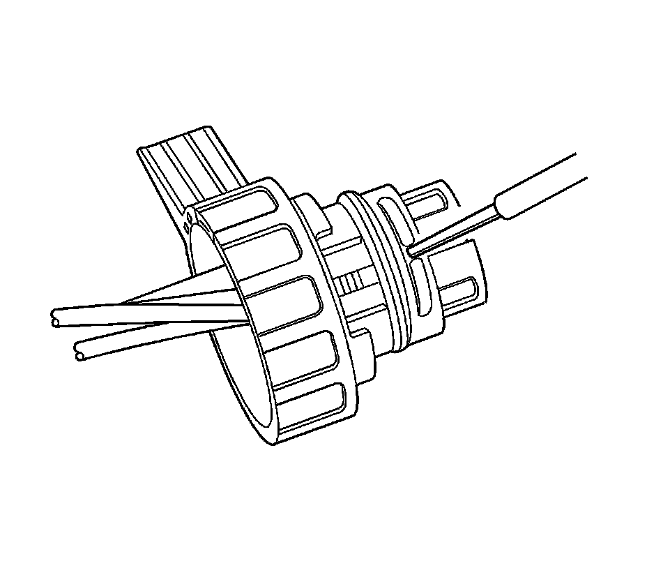 4. Use the J 38125-28 tool to release the terminals by inserting the tool into the terminal cavity as shown in the graphic. See the release tool cross reference in the Reference Guide of the J-38125 to ensure that the correct release tool is used.