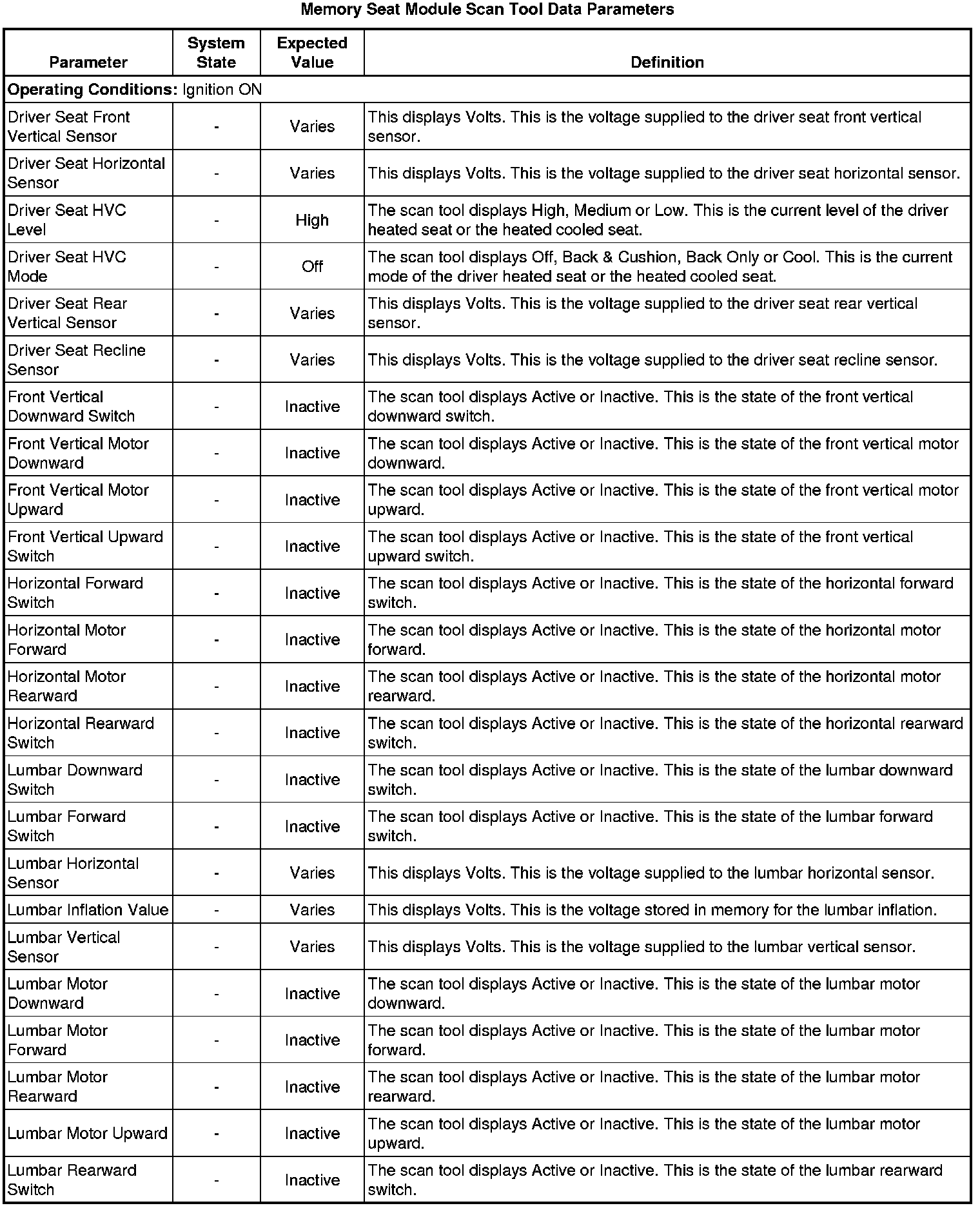 Driver Seat Adjuster Memory Module Scan Tool Information
