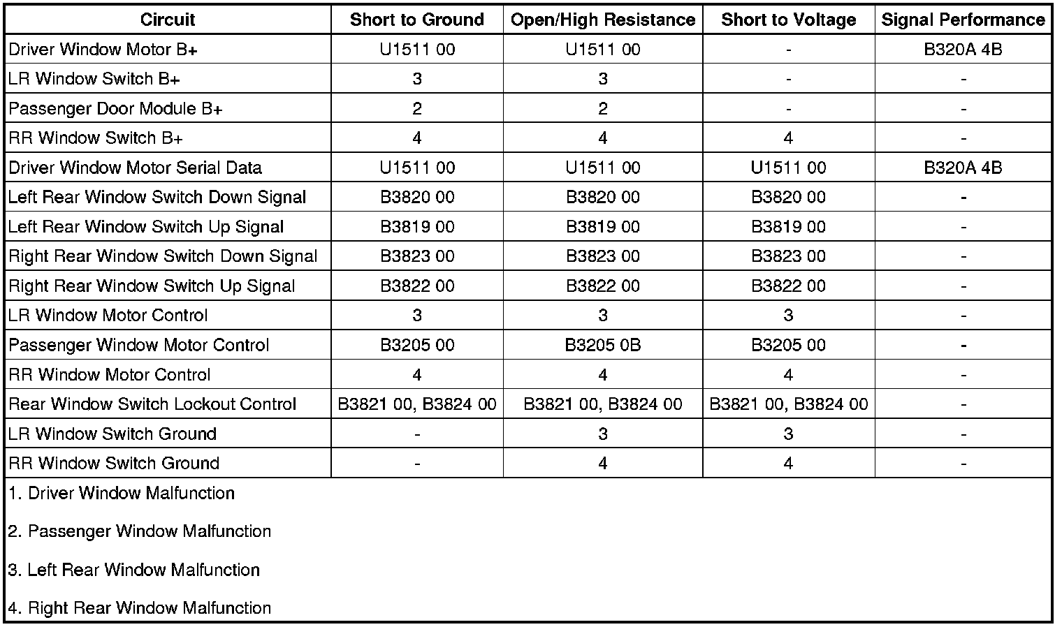 • If either rear passenger power window malfunctions, refer to Rear Passenger Window Malfunction.