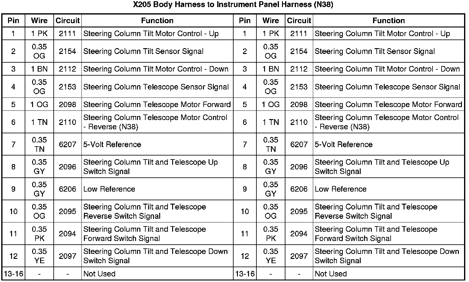 X205 Body Harness to Instrument Panel Harness (N38)