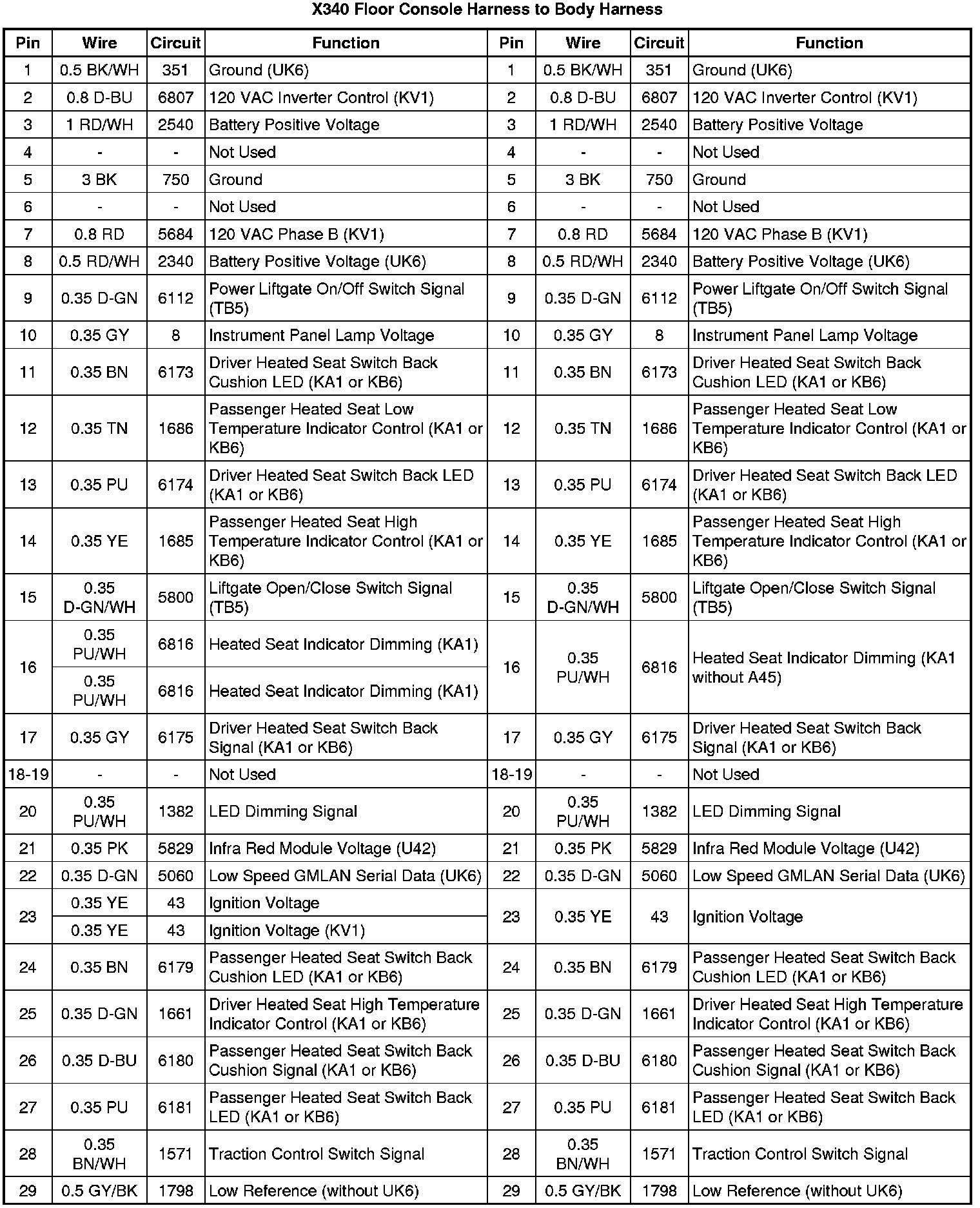 X340 Floor Console Harness to Body Harness