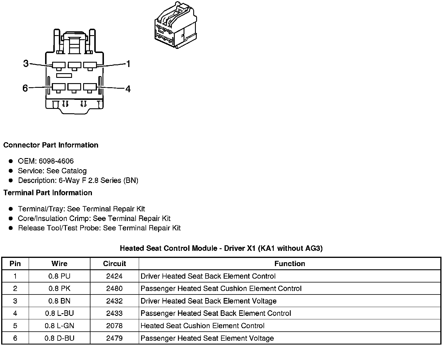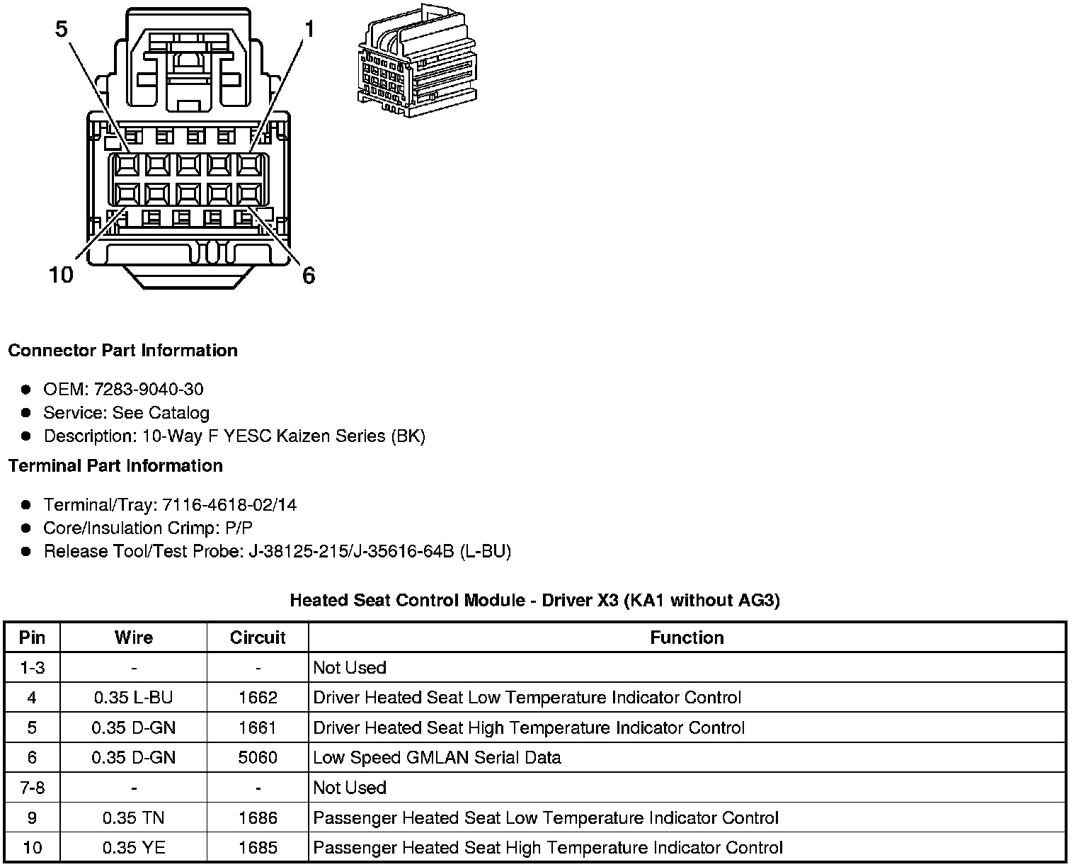Heated Seat Control Module - Driver X3 (KA1 without AG3)