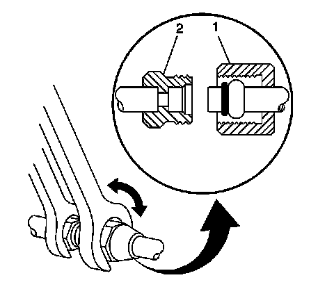 * For compression style fittings use a back up wrench on the fitting (2) and tighten the fitting nut (1) to specification.