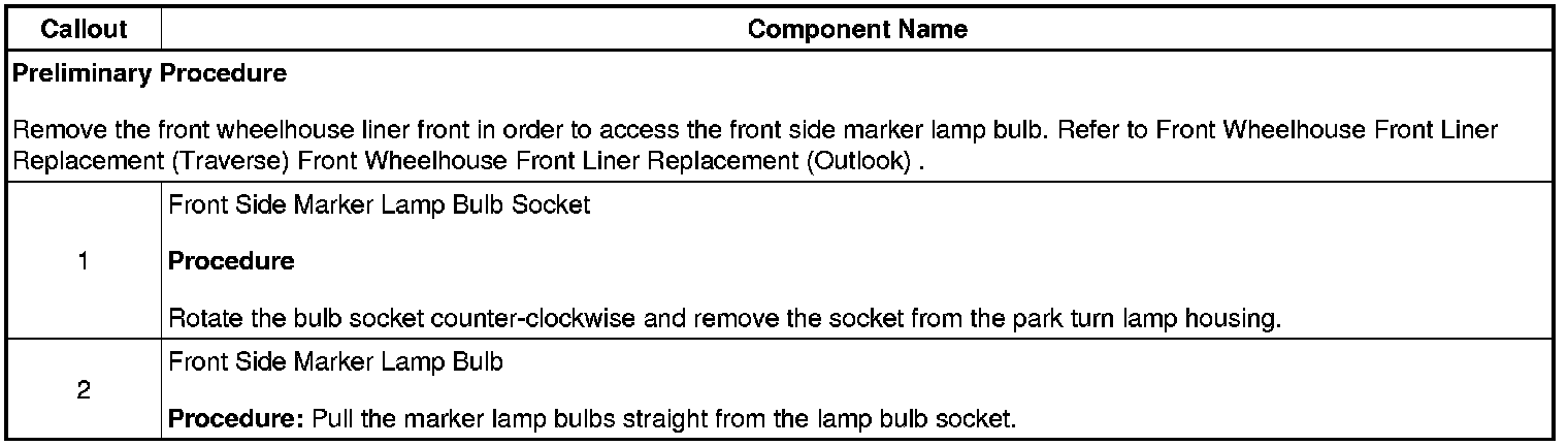 Front Side Marker Lamp Bulb Replacement (Traverse)