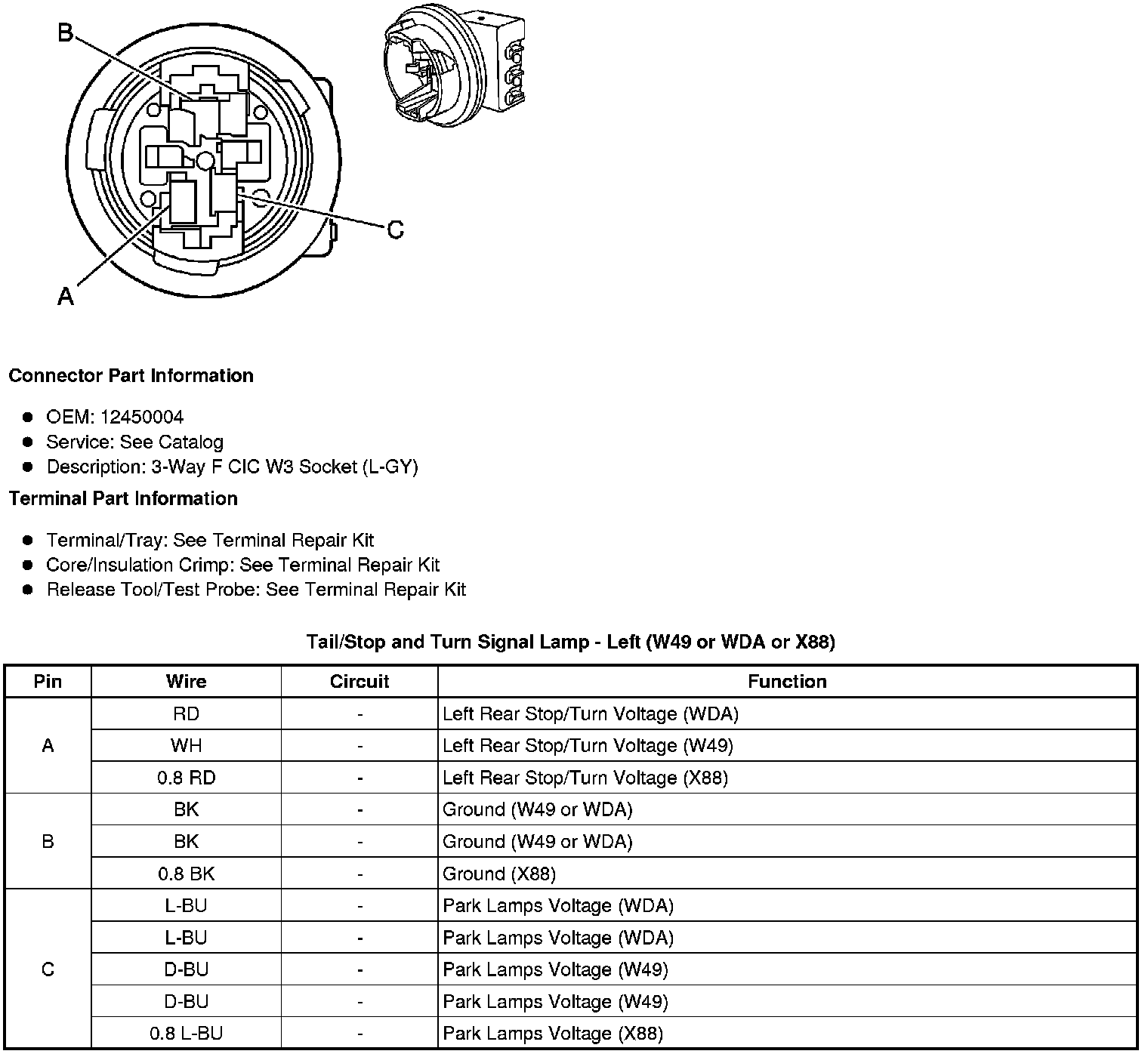 Tail/Stop and Turn Signal Lamp - Left (W49 or WDA or X88)
