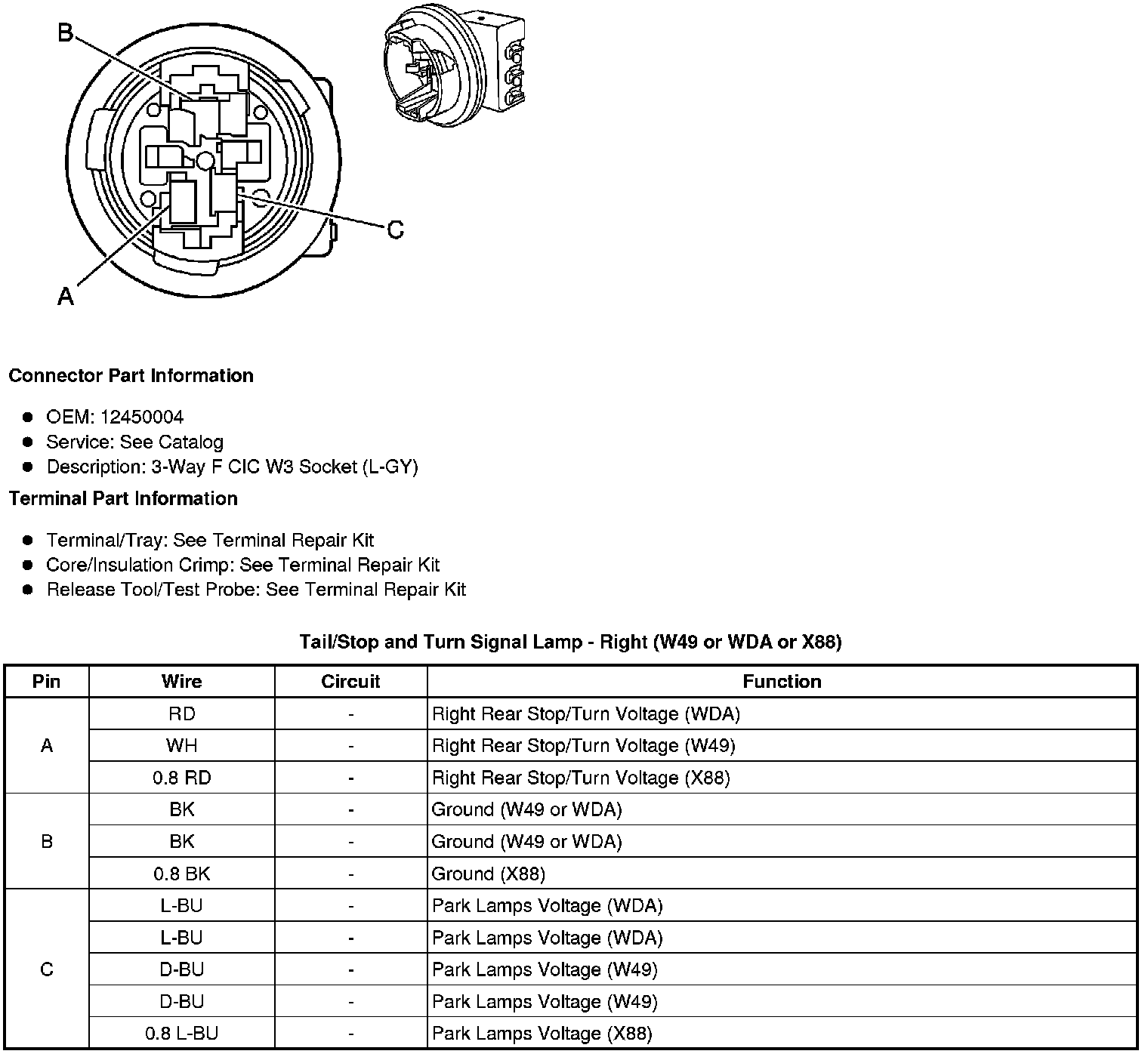 Tail/Stop and Turn Signal Lamp - Right (W49 or WDA or X88)
