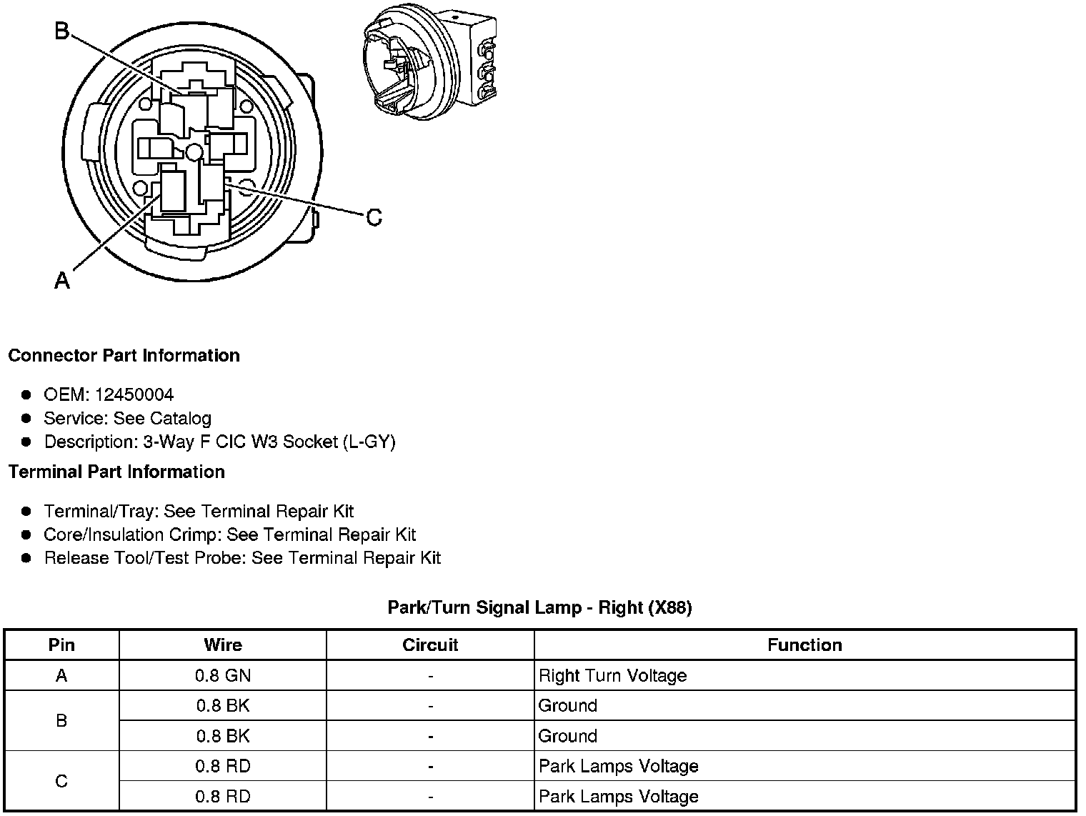 Park/Turn Signal Lamp - Right (X88)