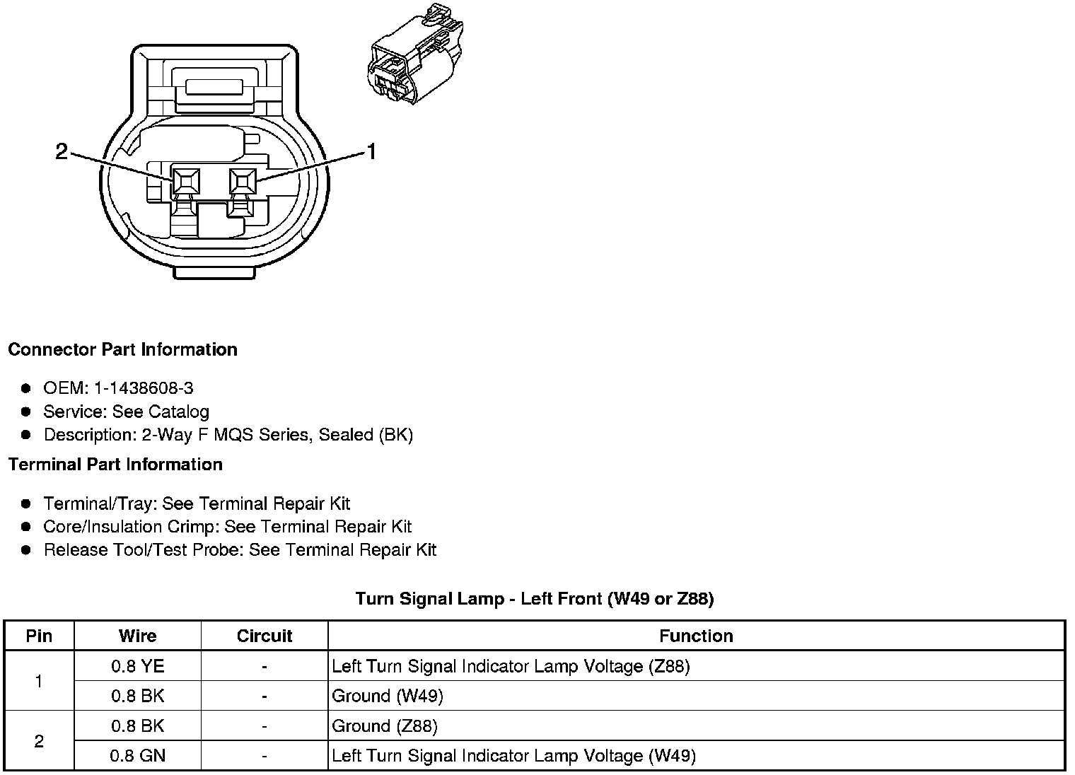 Turn Signal Lamp - Left Front (W49 or Z88)