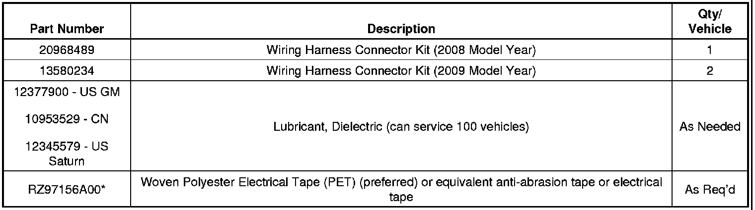 * To obtain the Woven Polyester Electrical Tape (PET), contact Kent Automotive at 1-888-YES-KENT (1-888-937-5368) and request the special order part number above.