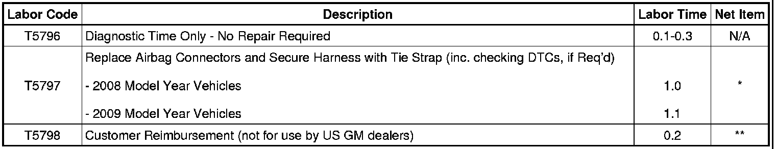 Involved are certain 2008 and 2009 model year Buick Enclave, GMC Acadia, and Saturn OUTLOOK vehicles, and some 2009 Chevrolet Traverse vehicles. Dealers are to confirm vehicle eligibility prior to beginning repairs by using the Applicable Warranties section in the Global Warranty Management system. Dealership technicians should always check this site to confirm vehicle involvement prior to beginning any required inspections and/or repairs.