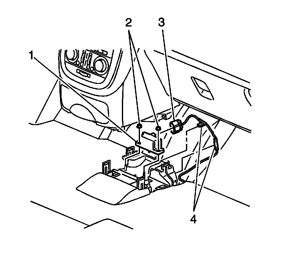 1. Remove the front floor console bracket assembly. Refer to Front Floor Console Bracket Assembly Replacement Front Floor Console Bracket Assembly Replacement.