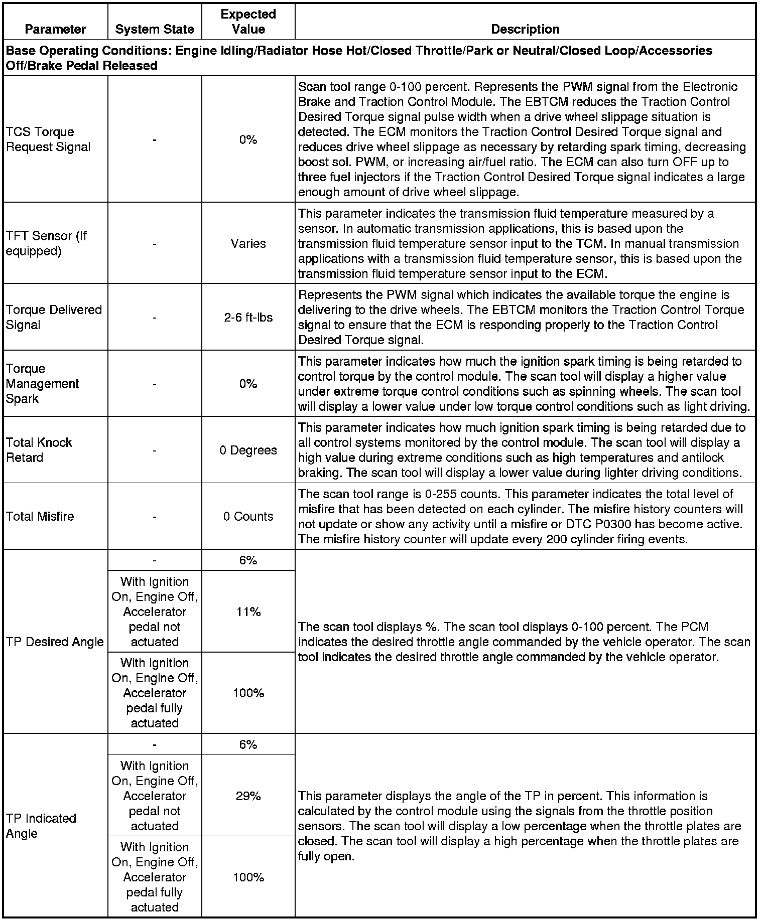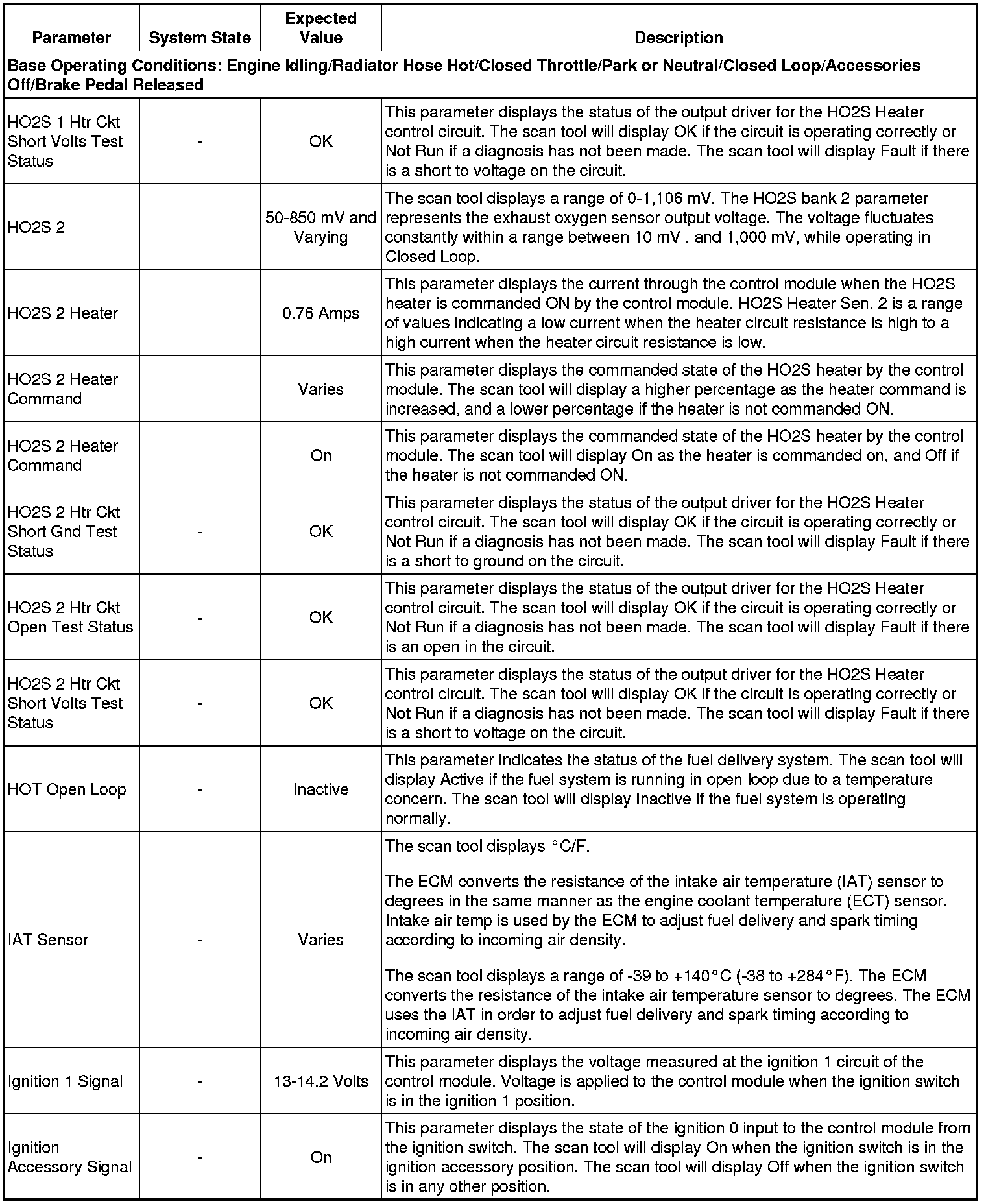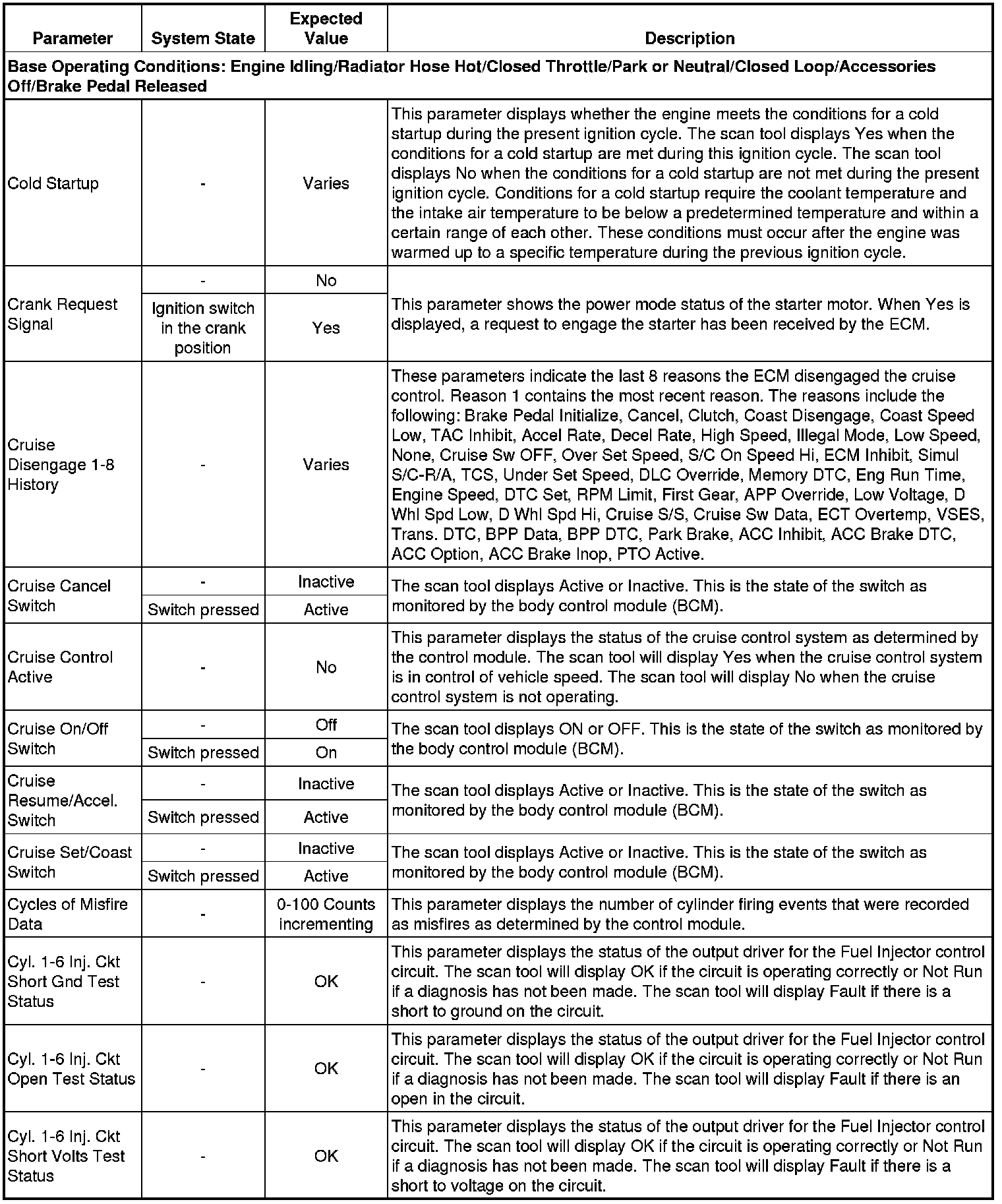 Only the parameters listed below are referenced in this service manual for use in diagnosis. If all values are within the typical range described below, refer to Symptoms - Engine Controls Symptoms - Engine Controls for diagnosis.