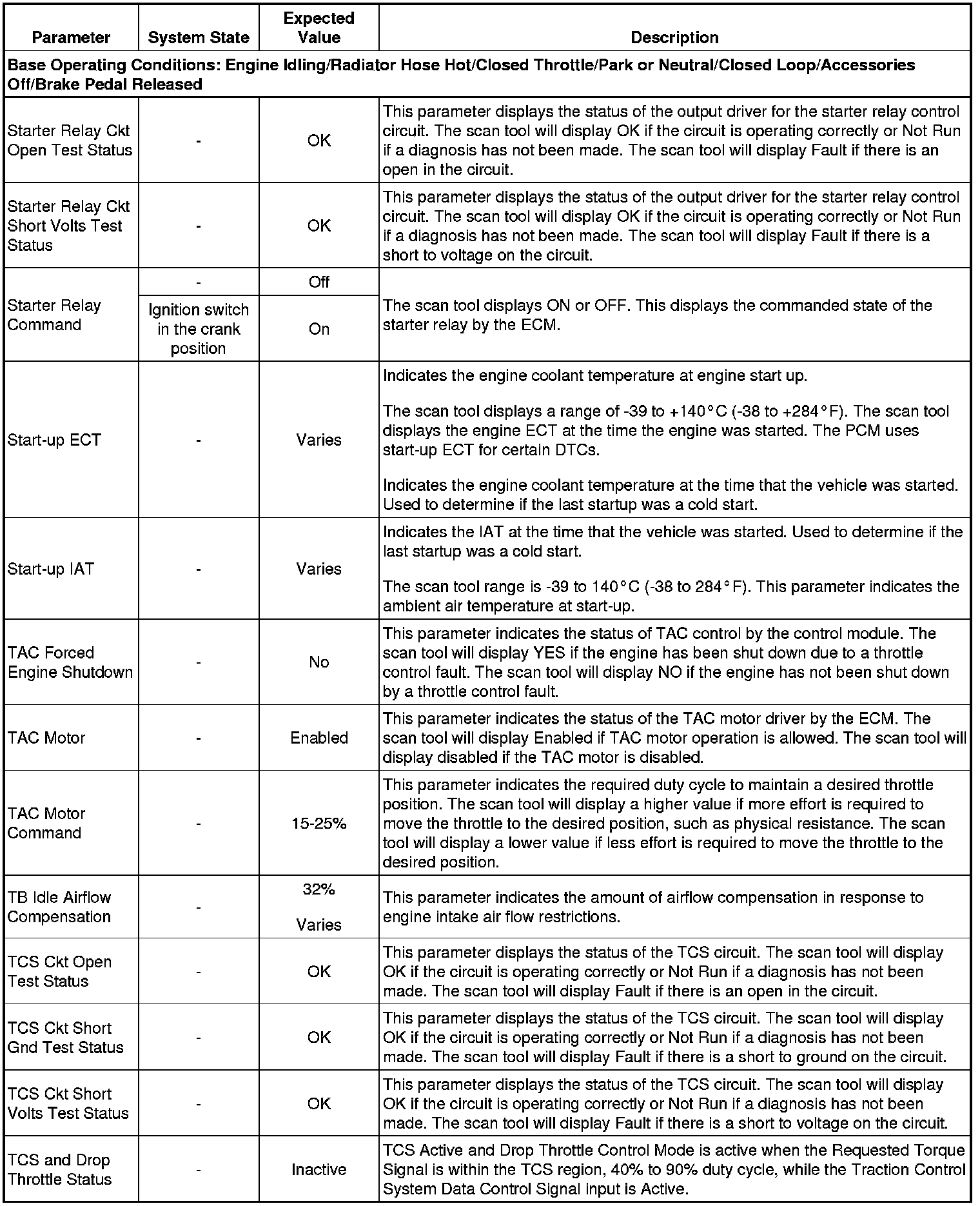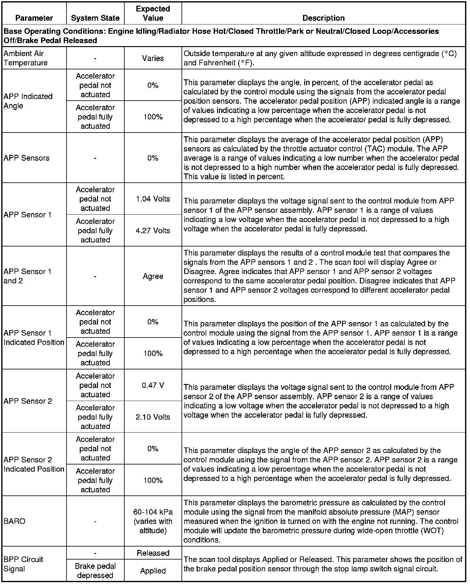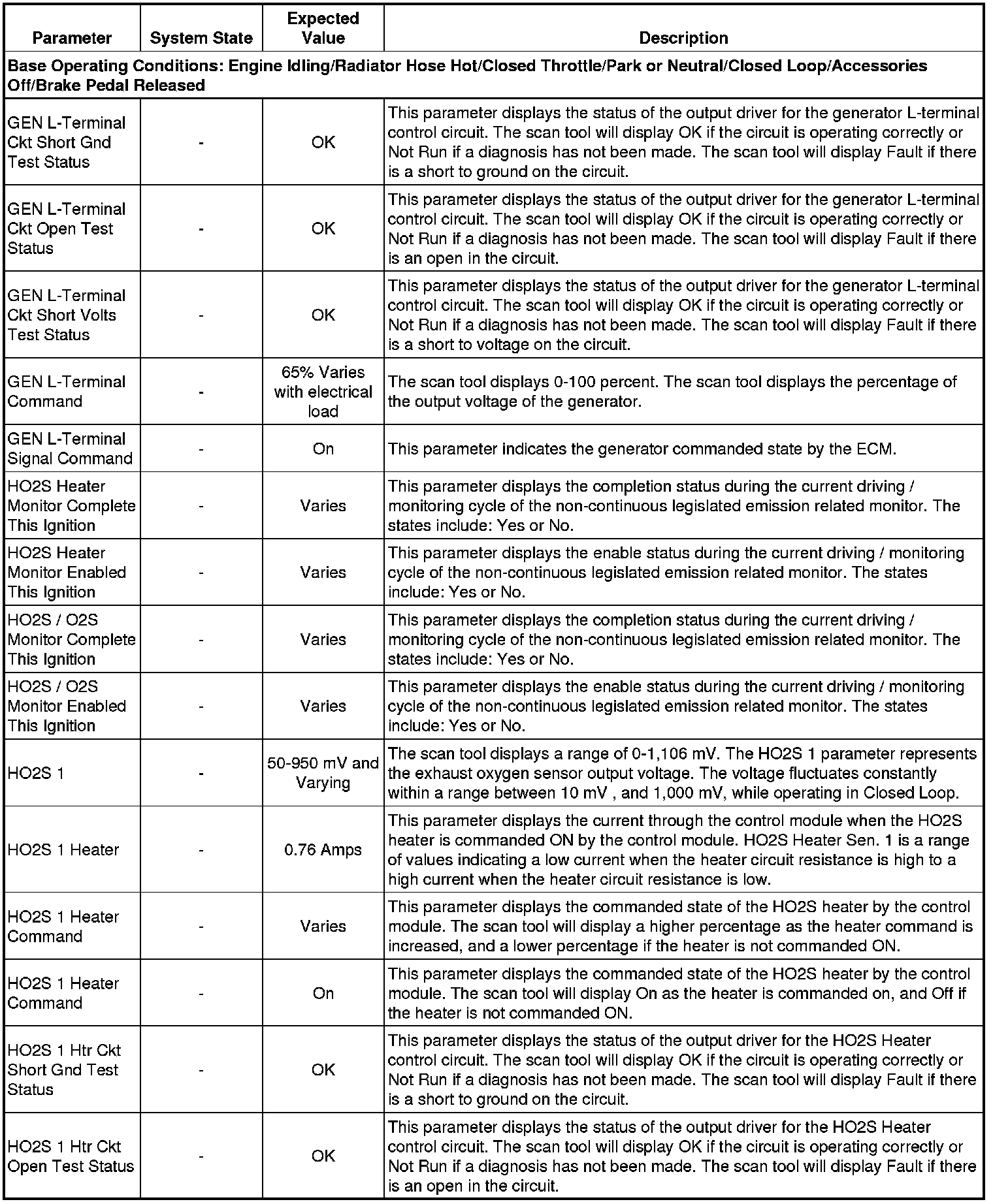 Only the parameters listed below are referenced in this service manual for use in diagnosis. If all values are within the typical range described below, refer to Symptoms - Engine Controls Symptoms - Engine Controls for diagnosis.