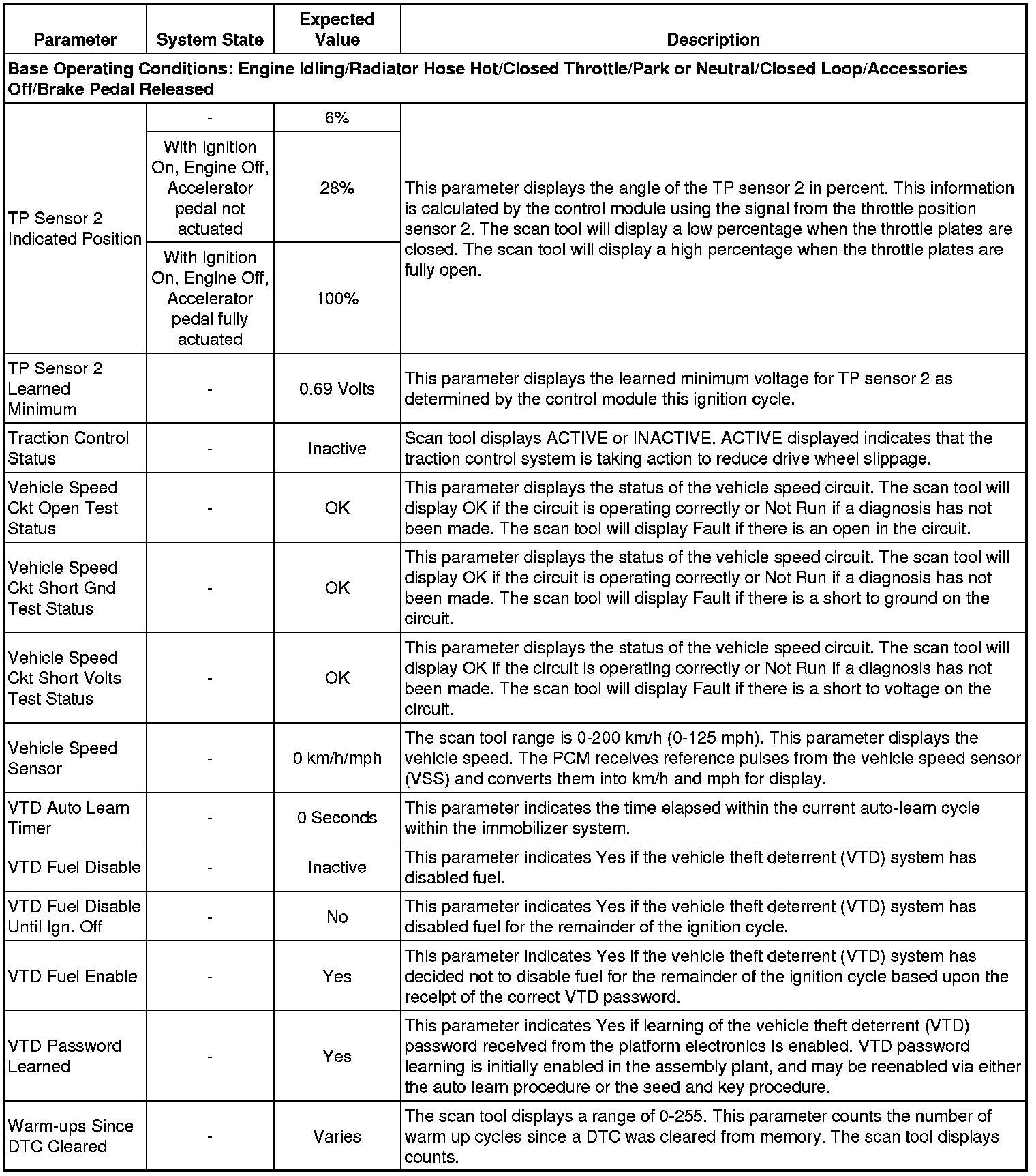 The scan tool values from a properly running engine may be used for comparison with the engine you are diagnosing. The Engine Scan Tool Data List represents values that would be seen on a normally running engine.