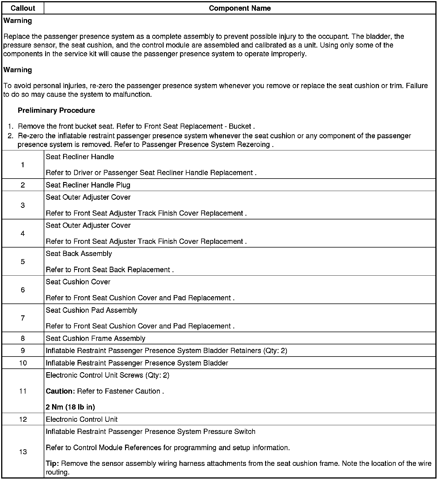 Inflatable Restraint Passenger Presence System Replacement - Front