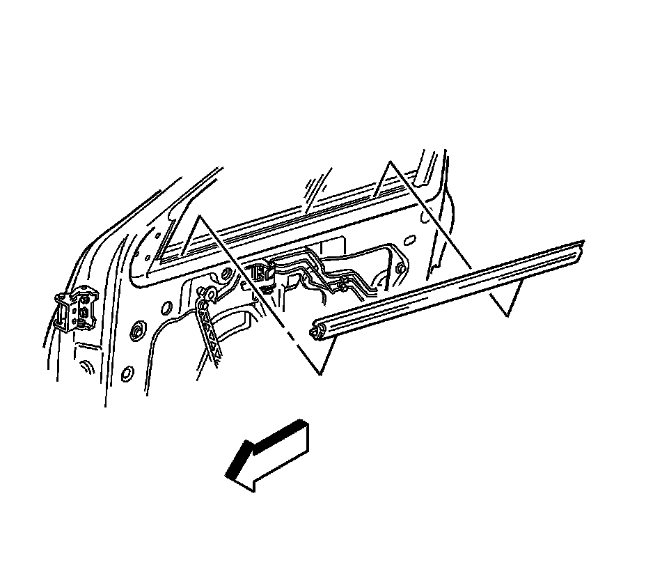 3. Remove the front door inner belt window sealing strip by lifting off the pinch-weld flange.