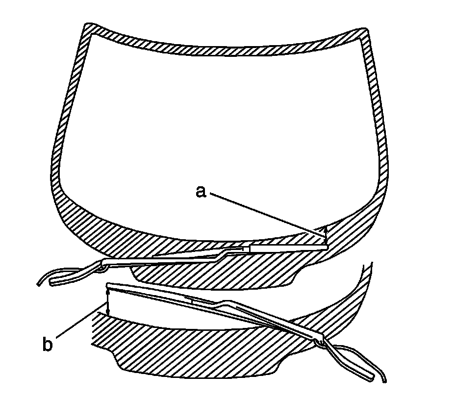 3. Align the wiper blade tip to the horizontal mark on the windshield within the blackout area (a or b).
