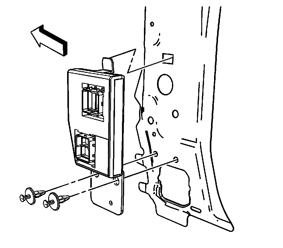 2. Remove the right front hinge pillar trim panel. Refer to Body Hinge Pillar Trim Panel Replacement - Right Side (Body Hinge Pillar Trim Panel Replacement - Right Side).