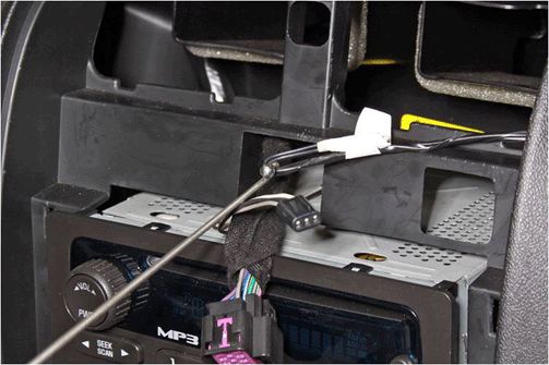 4. Attach a wire harness loop to the electrical hook. Route the wire harness behind the air bag.