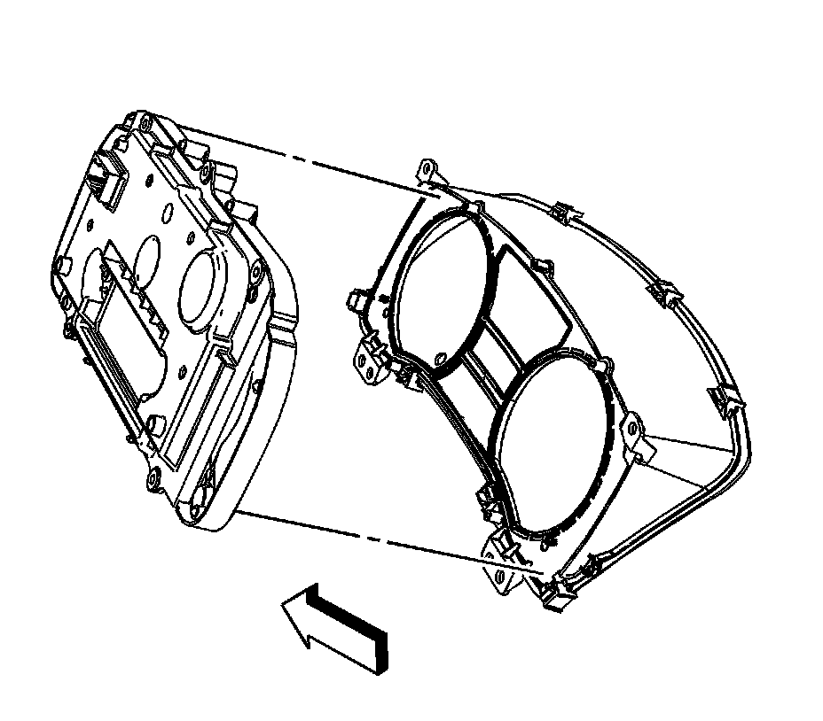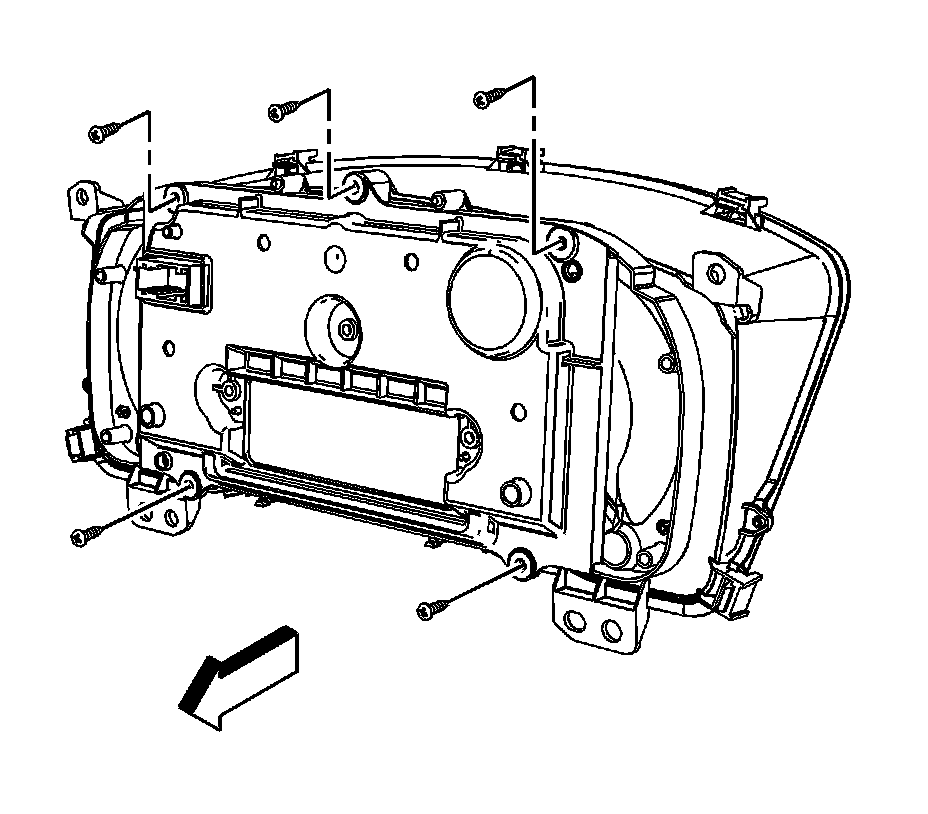 1. Remove the instrument panel cluster (IPC) bezel. Refer to Instrument Panel Cluster Trim Plate Bezel Replacement (Instrument Panel Cluster Trim Plate Bezel Replacement).
