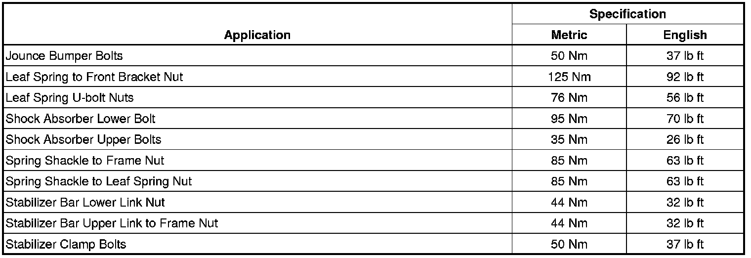 Fastener Tightening Specifications