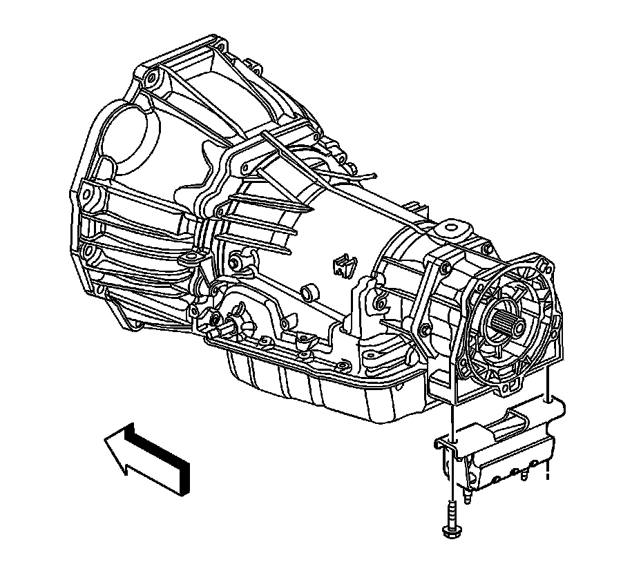 1. Remove the transmission support. Refer to Transmission Support Crossmember Replacement (2WD) (Service and Repair) Transmission Support Crossmember Replacement (4WD) (Service and Repair).