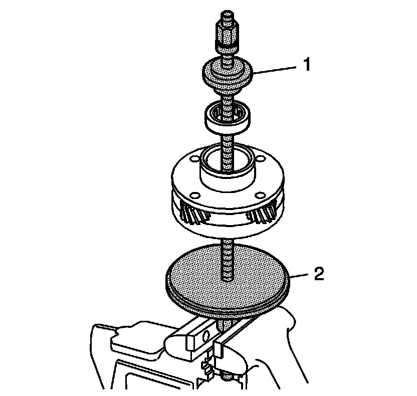 23. Using the J 45933-2 (1) and the J 45933-3 (2) of the J 45933 - assembly/disassembly kit, compress the dampner under the annulus gear.