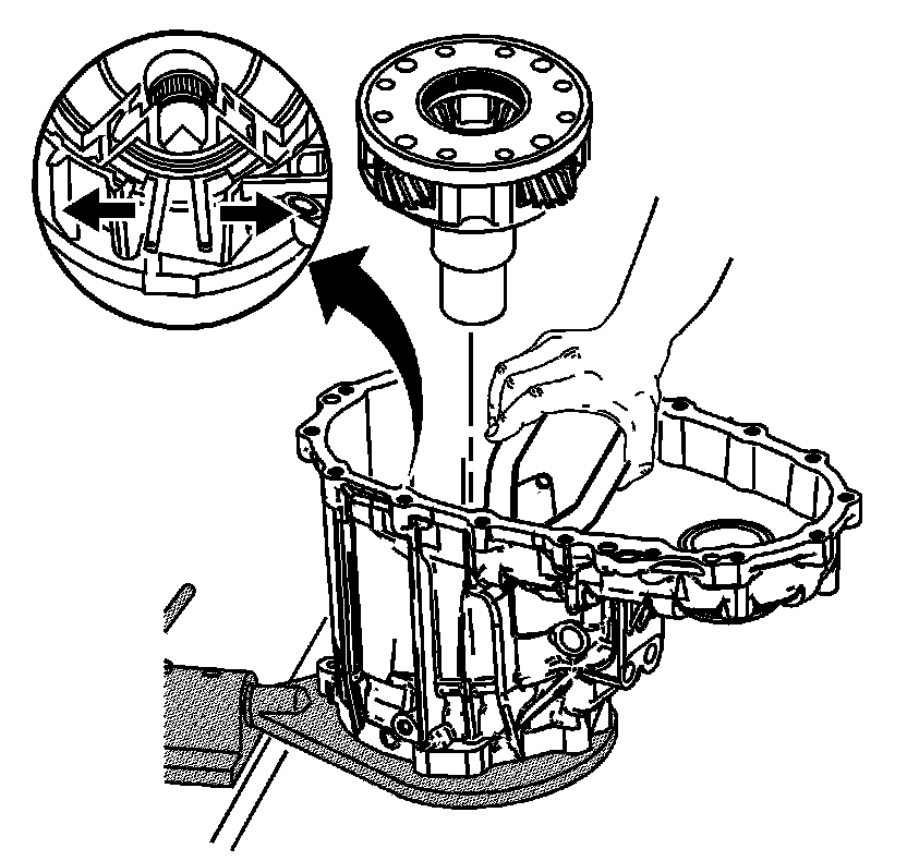 35. While the retaining ring is spread, install the planetary carrier assembly.