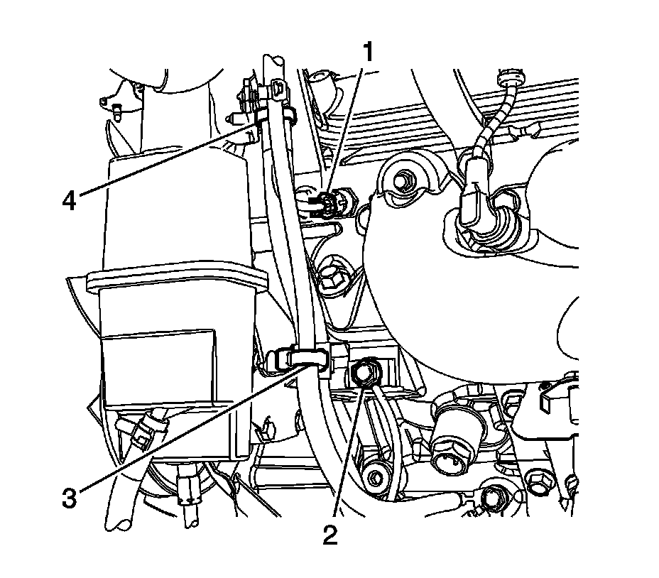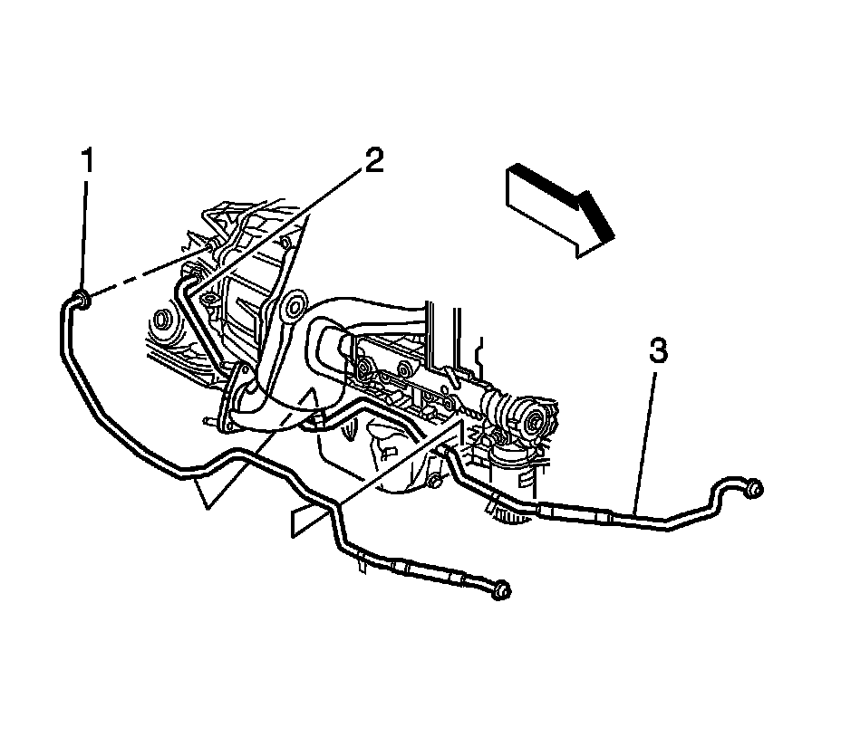 11. Install the transmission fluid cooler lines to the right side of the engine.