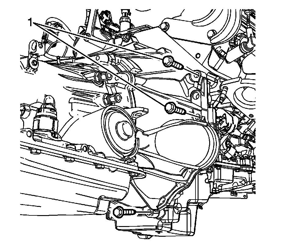 7. Install the 3 upper transmission bolts/studs (1) and tighten to 50 Nm (37 lb ft).
