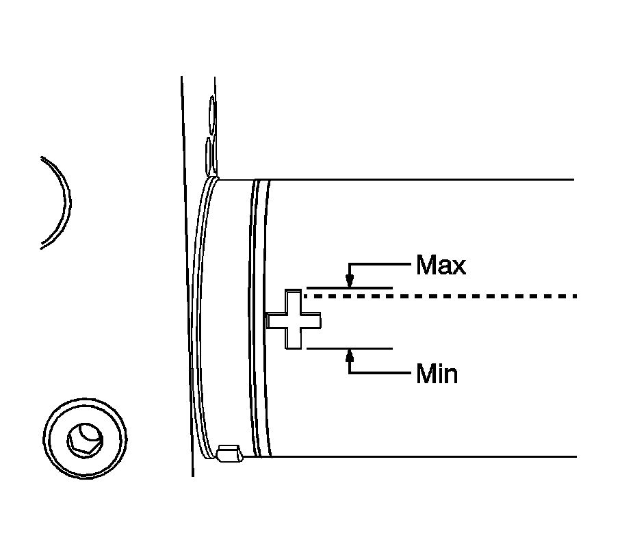 8. The liftgate hydraulic actuator pump must rest in the horizontal position for one minute before the hydraulic fluid level is inspected. The level must be above the + mark.