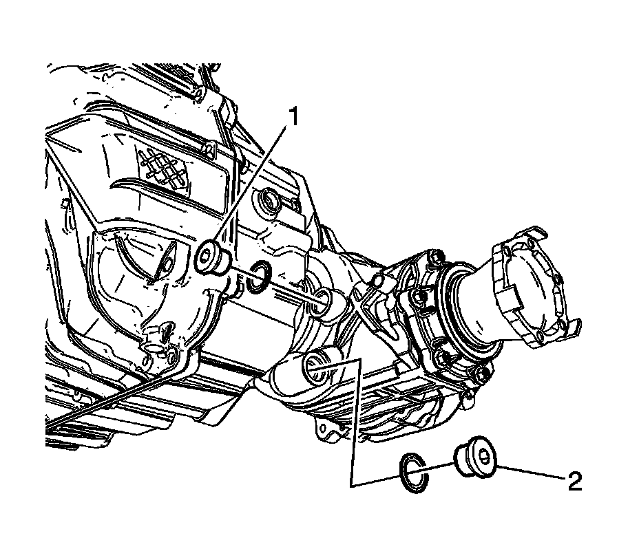 3. Fill the transfer case with synthetic gear lubricant GM P/N 89021677 (Canadian P/N 89021678) to the bottom of the fill plug, or 0.80 L (0.85 qt).