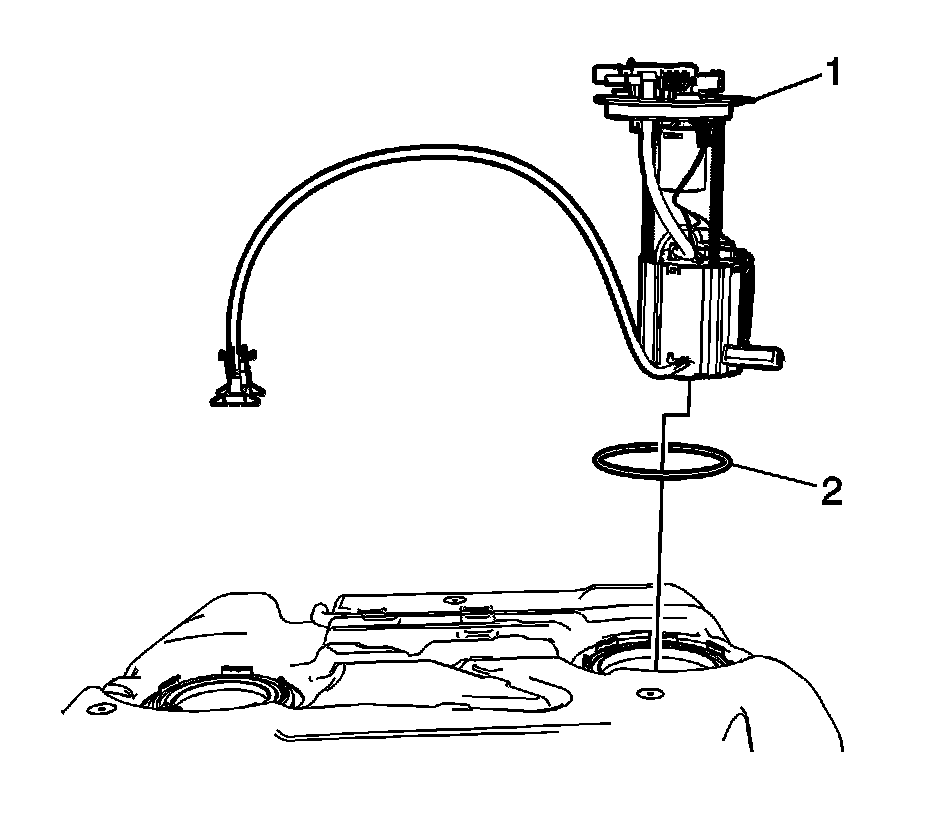 2. Install a NEW O-ring (2) and the primary fuel tank module (1).