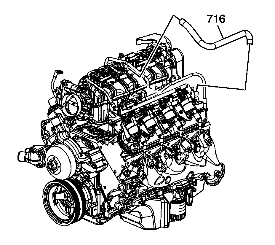 9. Install the positive crankcase ventilation (PCV) hose - dirty air (716).