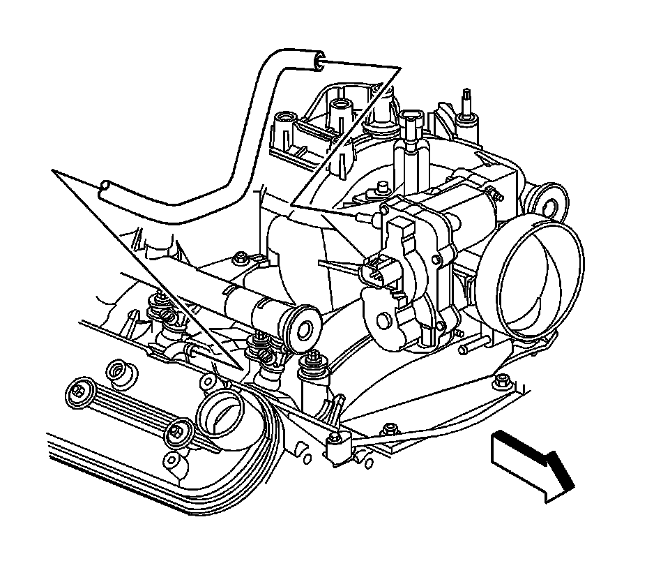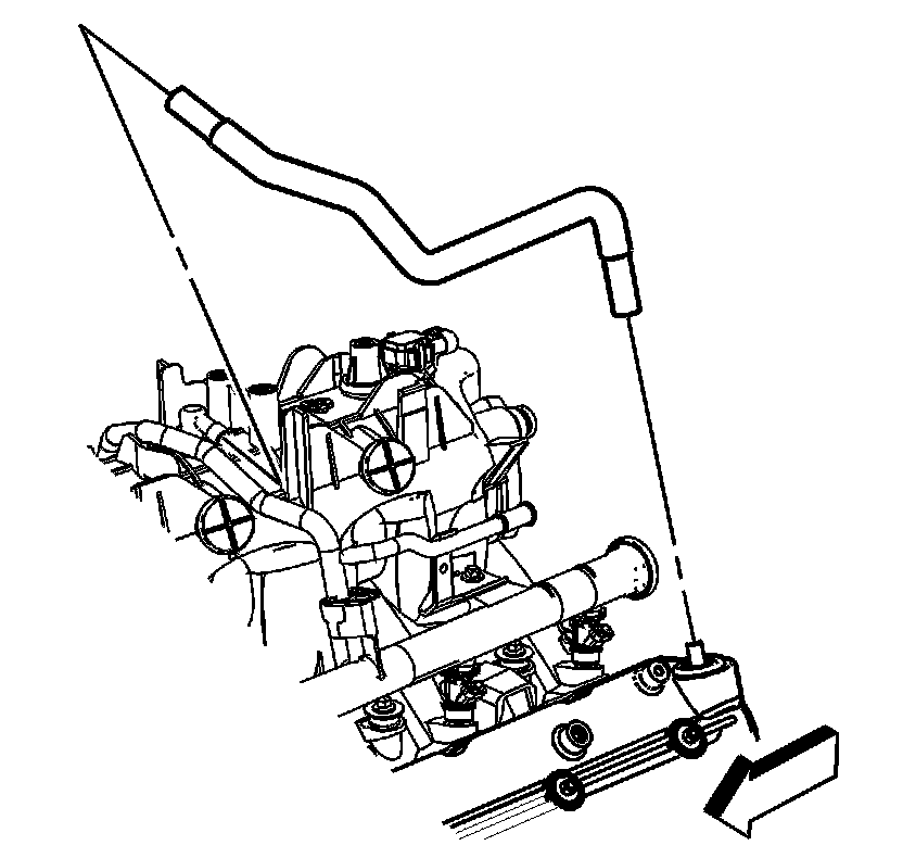 2. Remove the positive crankcase ventilation (PCV) tube from the intake manifold and valve rocker arm cover.