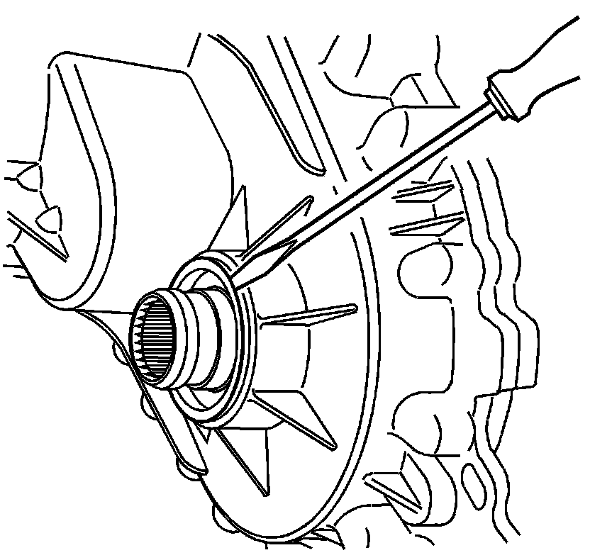 12. Remove the rear output shaft seal by prying out with a flat-blade screwdriver.