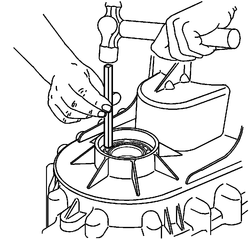 31. Remove the input shaft bushing from the front case using a hammer and brass drift.