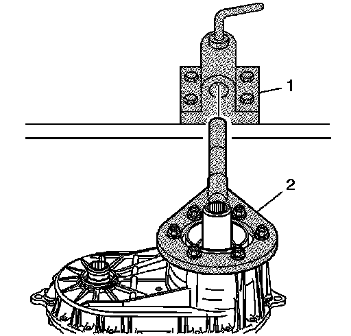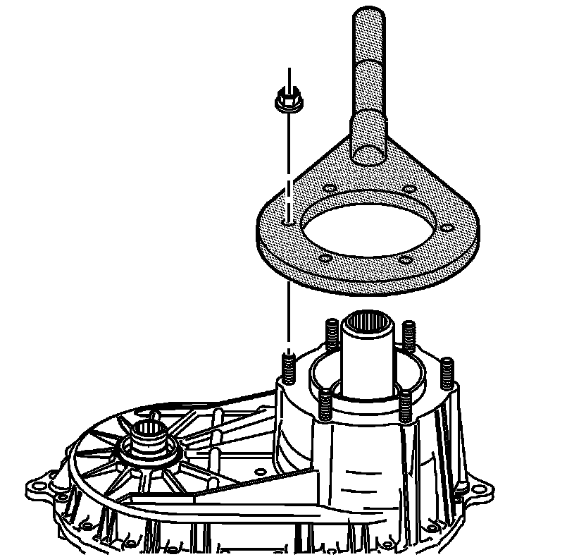 2. Attach the J 45759 - assembly fixture on the transfer case using the adapter studs. All of the transfer case disassembly procedures can be performed with the case mounted to the J 45759 - assembly fixture.