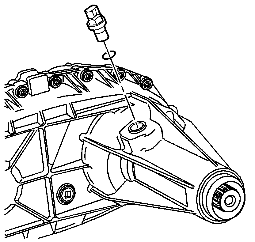 4. Remove the drain plug. Ensure all of the transfer case fluid is drained out of the transfer case.