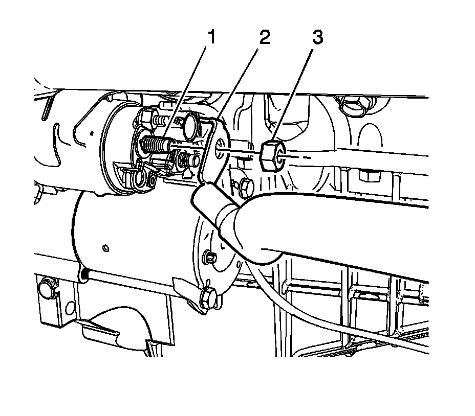 8. Remove the battery terminal nut (3) on the starter solenoid (1).