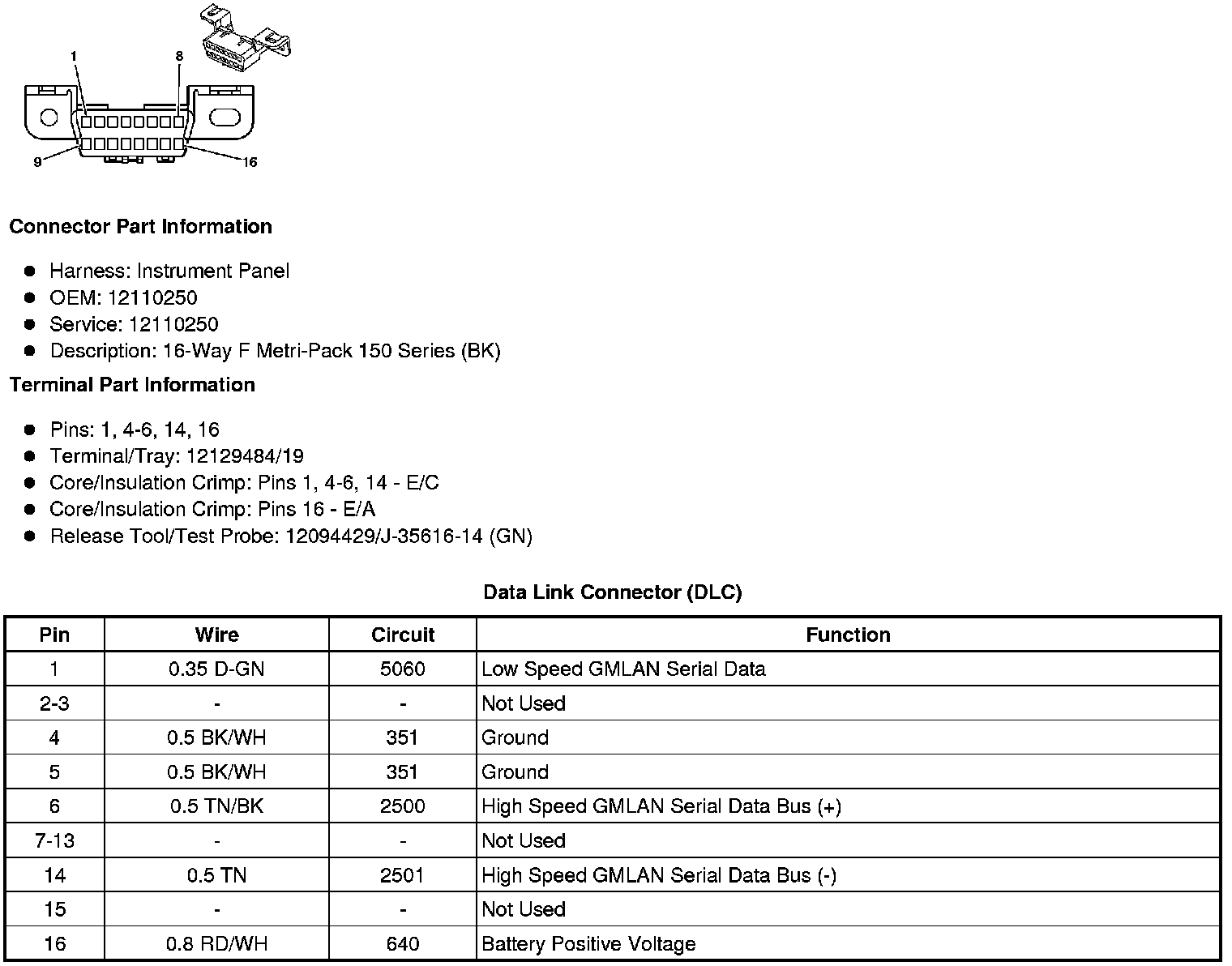 Data Link Connector: Diagrams