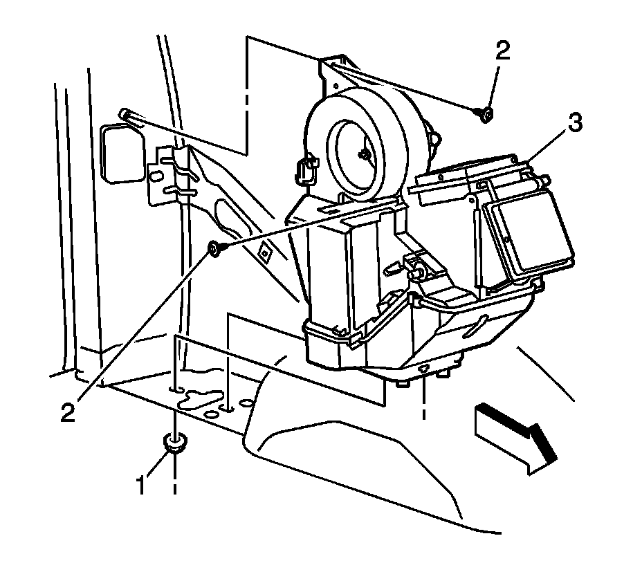12. Remove the retaining nuts from the underside of the auxiliary HVAC module.