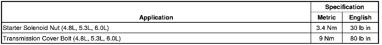 Starting and Charging: Specifications