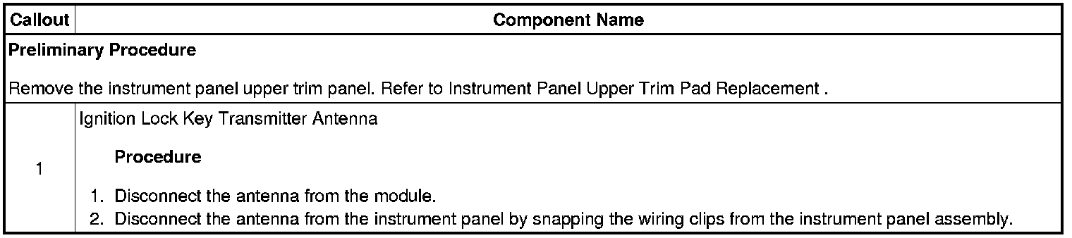Ignition Lock Key Transmitter Antenna Replacement - Instrument Panel
